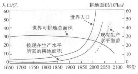 [2022·重庆重点中学高一质检]读世界人口增长与土地资源的供求图(含预测),完成 4、5 题。