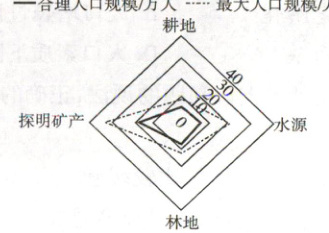 13.C [解析]根据材料信息可知,目前该流域人口数量为12.4万,已经超过了人口适宜规模,因此综合治理与开发措施应着重于对短板(耕地)的补偿,即适当开垦荒地种粮,C项正确。压缩部分耕地为林地,耕地资源更少,更加满足不了粮食需求,A项错误。矿产资源和水源不是影响该流域人口容量的最大的制约因素,B、D项错误。
