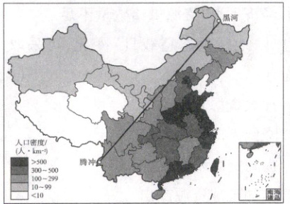 [2022·江苏启东中学高一质检]读中国人口分布图,完成 18、19 题。