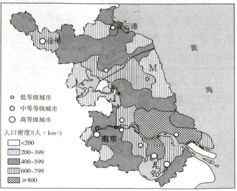 下图为江苏省人口密度分布图。读图,完成 6~8 题。