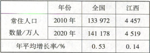 [2022·广东兴宁高一期中]为落实三孩生育政策,2021 年 9 月江西省通过立法将女性产假时间延长至 188 天。下表为全国第七次人口普查部分数据。据此完成 8~10 题。