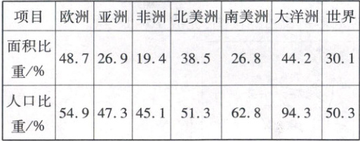 [2022·安徽皖西南联盟高一 4 月联考]下表是各大洲及世界距海岸 200 千米范围内的面积和人口比重表。读表,完成 11~13 题。