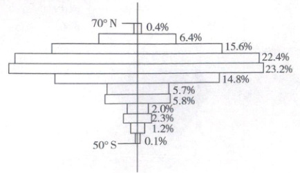 14. 占全球人口比重最大的纬度范围是(