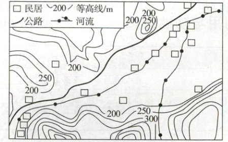 6.D【解析】由图可知,民居主要沿着河流分布,该地为山区,河谷地区地势平坦,水源充足,有利于生产生活和对外联系,D项正确。在河流两侧的民居数量多于公路两侧,A项错误。据图可知,民居呈带状分布,分布相对稀疏,B项错误。该地为山区,等高线密集,地势起伏大,不适合民居的分布,C项错误。