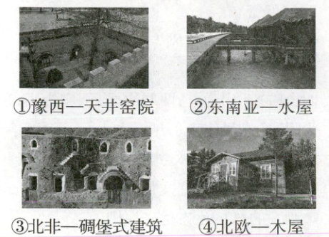 7. 图示传统民居特点与当地环境特征对应正确的是(