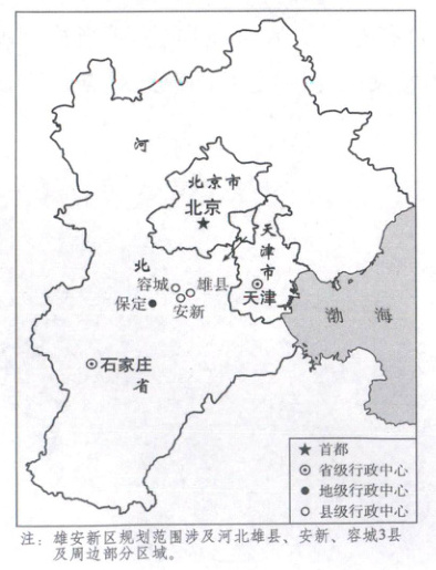[2022·江西赣州高一期中] 2017 年,我国政府决定设立雄安新区,集中疏解北京的非首都功能,雄安新区将建成国际一流的绿色、现代、智慧城市。读图,完成 20~22 题。