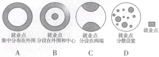 12.D【解析】为了吸引产业和人口迁入,便于生产生活,MK新城在规划时采取的城市布局模式最合理的是就业点分散设置,原因是便于发展通信、教育、社区和商贸等。其产业大多属于生活性服务业,生活性服务业符合零散分布的规律,导致就业点也随着产业零散分布,D项正确。A、B、C项模式中主要体现的是集中分布,不符合生活性服务业的分布特点,也不利于生活性服务业的发展,故A、B、C项错误。