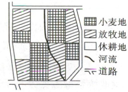23.A【解析】图中显示,当地土地划分为小麦地、放牧地、休耕地,它们之间经常轮换,有利于土地休养生息,利于土壤肥力保持,①正确;表中信息表明,该农场的农事活动繁忙期错开,有利于合理利用农时,②正确;该农场可以根据市场需求和价格调整小麦地、放牧地、休耕地的比例,因此对市场的适应性强,③正确;该农场一般机械化水平高,劳动力投入量不大,④错误。故选A项。