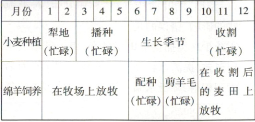 [2022·陕西西安高一期末] 澳大利亚地广人稀,700 多万平方千米的国土只有 2000 多万人口,是世界上主要的小麦和羊毛出口国,题图示意澳大利亚某农场用地布局,题表示意该农场农时安排。据此完成 22、23 题。