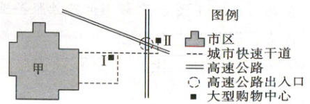 14.C【解析】读图可知,图中大型购物中心没有分布在市区,排除A、D项。付租能力不是区位优势,B项错误。图中两个大型购物中心位于城市快速干道附近或者高速公