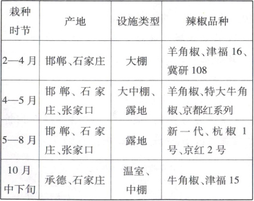 1. 河北省鲜食辣椒可全年供应市场,主要得益于(