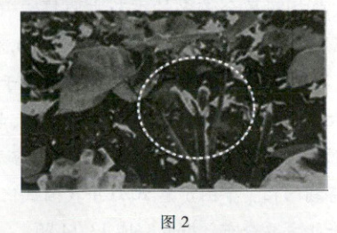 德州地区植棉始于宋末、元初。到了明代,德州成为著名的产棉区。新中国成立以来一度是我国华北地区重要的优质棉生产和加工基地。由于国家政策引导以及地方产业结构调整的原因,近年来德州棉花种植面积严重萎缩。棉花具有无限生长的习性,如山东德州棉区8、9月份的气温虽然能使棉株主茎不断生长,花蕾不断分化,但随着秋后气温的逐渐下降,这部分花蕾往往不能开花,即使成铃也不能成熟。图1为德州所处的地理位置,图2虚线圆圈内为当地棉农手工为棉花打顶(掐掉棉花植株的顶芽与顶部的叶子)后的景观。