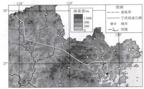 [2021·陕西铜川高一期末] 下图为福建省宁(德)武(夷山)高速公路干线示意图。读图,完成 11、12 题。
