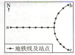 [2022·宁夏银川高一期中] 地铁指以在地下运行为主的城市轨道交通系统,绝大多数城市利用地铁运载市内通勤的乘客,在许多城市交通中地铁已担负起主要的乘客运输任务。题图为某城市的地铁线路图。读图,完成 19~21 题。
