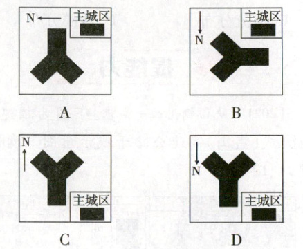 20 B 【解析】根据材料及所学知识可知,建设地铁是为了缓解城市通勤问题,因此地铁建设地区为城市人口密集地区,地铁形态与主城区形态相近。图中地铁东侧线路距离较长且站点较多,说明该城市东侧主城区面积大。根据图示可知,A项西侧主城区面积大,A项错误。B项东侧主城区面积大,B项正确。C项北侧主城区面积大,C项错误。D项南侧主城区面积大,D项错误。