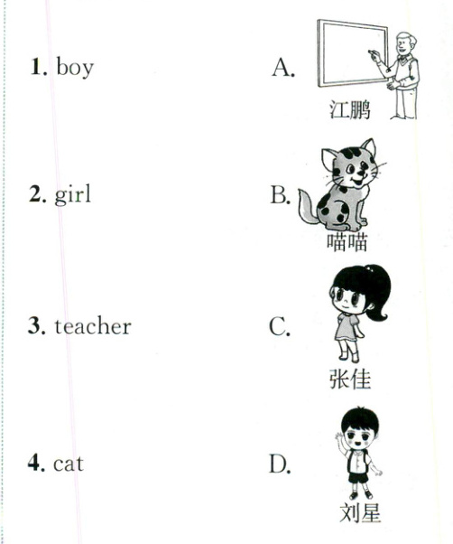 Li Hua: Hello, Wang Yun. Wang Yun: Hi, Li Hua. Li Hua: Look! This is a boy. What's his name? Wang Yun: His name is Liu Xing. Li Hua: This is a girl. What's her name? Wang Yun: Her name is Zhang Jia. Li Hua: This is a teacher. What's his name? Wang Yun: His name is Jiang Peng. Li Hua: This is a cat. What's her name? Wang Yun: Her name is Miaomiao.