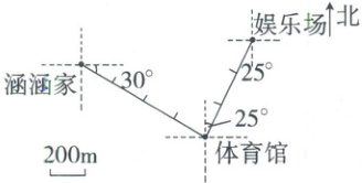 (2)西偏北20°方向走400m到达体育馆,再向西走500m到达银行,最后向西偏北45°方向走600m到达学校