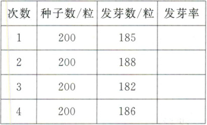 2. 某校六(1)班学生进行花生种子发芽试验,试验结果如下,请你帮他们计算出发芽率。