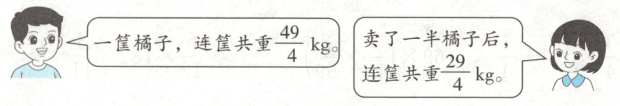 3.橘子的质量:($\frac{49}{4}$ - $\frac{29}{4}$)×2 = 10(kg)