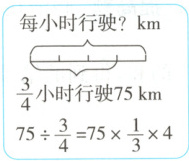 1. 一辆小汽车$\frac{3}{4}$小时行驶了$75$km,平均每小时行驶多少千米?悦悦是按右图这样算的,算式中$75× \frac{1}{3}$表示()。