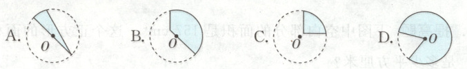 2. 把一张圆形纸片对折再对折,得到一个圆心角是()的扇形,它的面积是所在圆的面积的$\frac{($$)}{($$)}$。