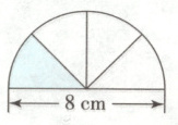 2. 右图中半圆形被等分成 4 个扇形,涂色部分的面积是()$cm^{2}$。