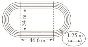 第二条跑道弯道的长:3.14×(34+2×1.25) = 3.14×36.5 = 114.61(m)