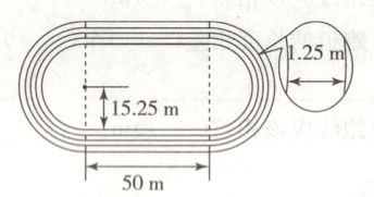 1. 实验小学新建了一条塑胶跑道,它由两条直道和两条半圆形跑道组成(如图)。