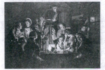 10. 如图为英国画家约瑟夫·赖特于1768年所创作的油画《空气泵实验》。画面正中是一场实验,实验显然做成功了,因为在那个抽空了空气的密闭玻璃杯中,小鸟已奄奄一息。漆黑笼罩的环境中,实验设备发出的光照亮了每一个人,给每个人以精神。这一创作表明 (