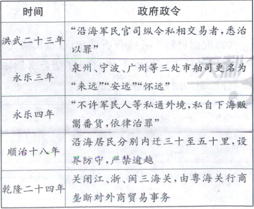 原因:自给自足的自然经济占统治地位;统治者为了维护统治的需要;抵御倭寇或西方殖民者的侵略,加强国防的需要;统治者盲目自大,对外部世界的错误认知。