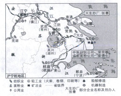 7. 下图为第一次世界大战期间沪宁杭地区民族资本主义的发展示意图。这表明沪宁杭地区 (