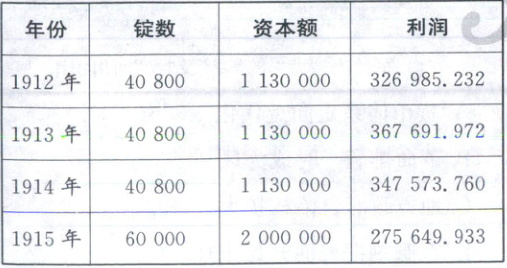 6. 下表为张謇创办的近代纺纱企业大生纱厂1912年至1915年间利润状况统计表。