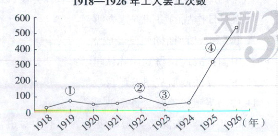 3. 阅读“1918—1926年工人罢工次数”图表,对图表中数据变化节点解读正确的有 (