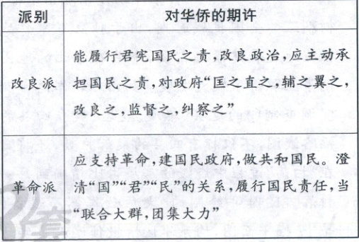6. 下表为辛亥革命时期改良派和革命派对华侨的期许。这表明 (