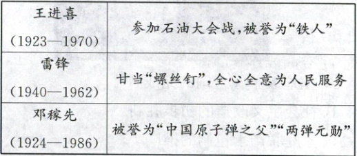 3. 下表是中国探索社会主义建设道路时期涌现出的模范人物。该表体现出的时代精神是(
