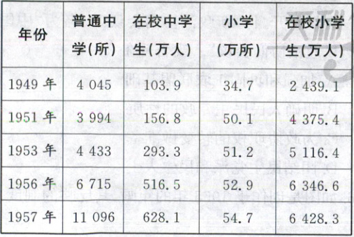 2. 阅读“新中国基础教育数据统计简表(1949—1957)”(
