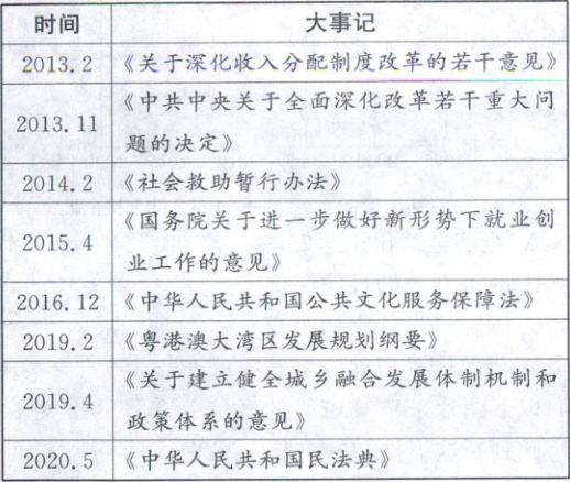 7.B 新时代中国特色社会主义事业的发展 材料中党和政府颁发的法令和决议涉及深化经济体制改革、社会保障、文化建设、法制建设等方方面面,为中国特色社会主义事业的发展提供了法律和政策保障,推动了中国特色社会主义事业的发展,故B项正确;2010年底中国特色社会主义法律体系的形成奠定了中华民族复兴的法制基础,故A项排除;C项不能全面反映材料信息,故排除;21世纪初,社会主义市场经济体制初步建立,与材料时间不符,故D项排除。