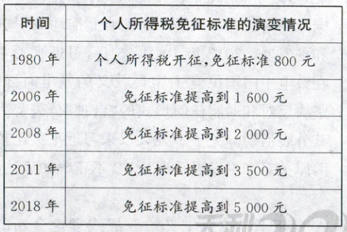 2. 下表为我国个人所得税免征标准的演变情况,这一变化的主要原因是 (