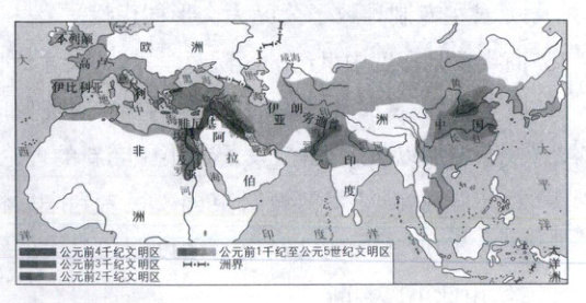 3. 以下为古代主要文明示意图。据此可知,在人类早期文明的产生中起决定作用的是 (