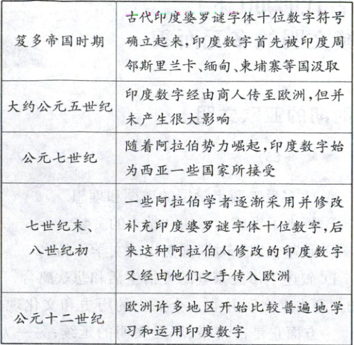 2.D 东西方文化交流 材料表明印度数字发源于古印度,传入阿拉伯后,阿拉伯人对其进行修改(又称阿拉伯数字),经阿拉伯人传向欧洲,之后经欧洲人再将其现代化,表明阿拉伯人沟通东西方文化,故D项正确;材料反映了印度数字发明和传播的概况,未体现经济繁荣促进科技创新,故A项错误;材料内容没有对不同古文明进行对比,不能体现古代印度文明“领先于世界”,故B项错误;材料表明阿拉伯人沟通东西方文化,未涉及社会转型,故C项错误。
