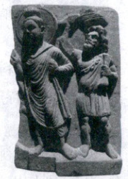 刚杵,一手持拂尘,身着希腊式服装,以佛教护法