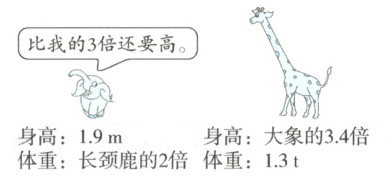 大象比长颈鹿重多少? 1.9×3.4 - 1.9