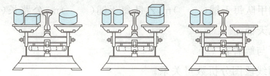 5. 根据下图中第一架天平和第二架天平的等量关系,可以判断出第三架天平的右面放()个