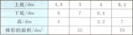 2. 用字母 $ S $ 表示梯形的面积,$ a $ 表示梯形的上底,$ b $ 表示梯形的下底,$ h $ 表示高。$ S = $,$ a = $,$ b = $,$ h = $。