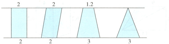 2. 如图(单位:cm),比较下图平行线间的四个图形,面积最大的是()。
