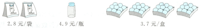 4. 妈妈到超市买了一些东西(如图所示),付款时准备 30 元钱够吗?()(填“够”或“不够”),你估算的方法是()。