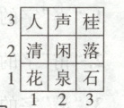 1. 跨学科 在《中国诗词大会》上,常用“九宫格”考查选手的诗词识别能力,请你根据数对提示的信息,从右图中识别出一句诗,并补全下面的表格。