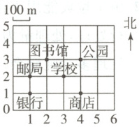 3. (1)学校的位置是,从学校往西走$200m$,再往南走$100m$,就是。