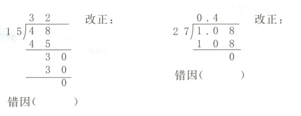 二、② 48÷15=3.2(竖式略) ① 1.08÷27=0.04(竖式略)