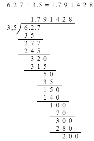 $2.3÷0.46=$ $0.8576÷0.32=$ $6.27÷3.5≈$ (得数保留两位小数)
